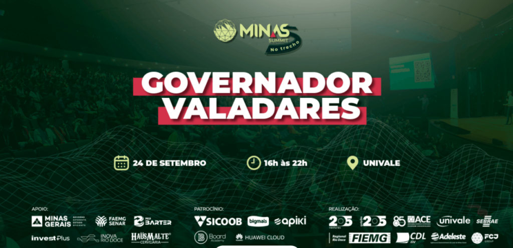 O Minas Summit no Trecho está chegando a Governador Valadares para trazer a essência do maior evento de inovação corporativa de Minas Gerais diretamente para a sua cidade! No dia 24 de Setembro de 2024, das 16h às 22h, junte-se a nós para uma tarde de networking, palestras inspiradoras e discussões sobre inovação e desenvolvimento econômico.